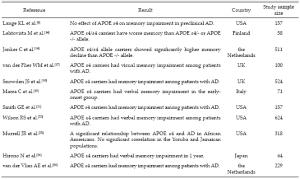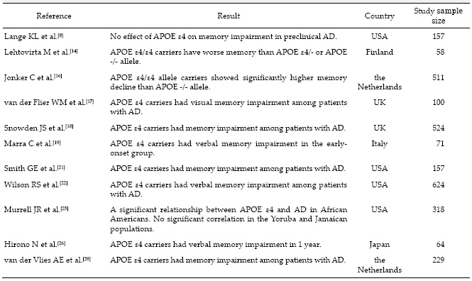 [9] Wisdom NM, Callahan JL, Hawkins KA. The effects of apolipoprotein E on non-impaired cognitive functioning: A meta-analysis. Neurobiol Aging 2011, 32(1): 63-74.
