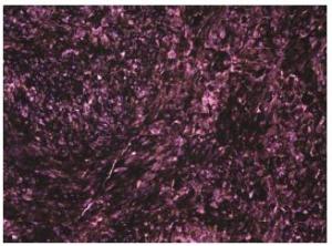 20170308102059 Figure 3 Hematoxylin and Eosin (H&E) staining, ×400. Variable amounts of melanin with areas of necrosis and foci of parenchymal infiltration and nuclear pleomorphism with occasional mitotic figures are observed.