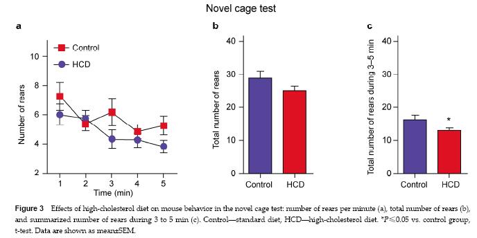 Behavioral features of mice fed with a cholesterol-enriched diet:Deficient novelty exploration and unaltered aggressive behavior