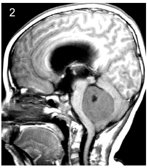 | Figure 2 Subtype 2, midline-located tumor with fourth ventricle floor infiltration. |