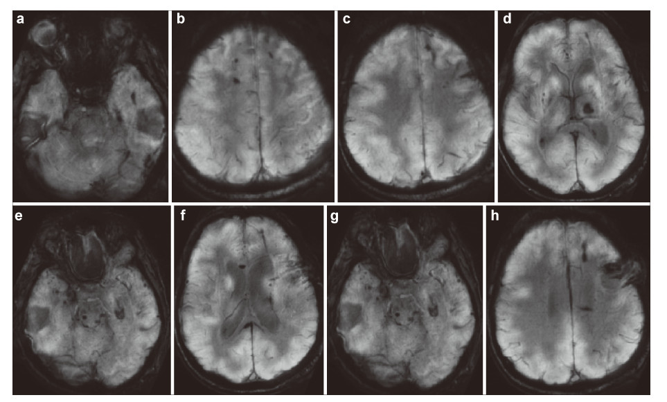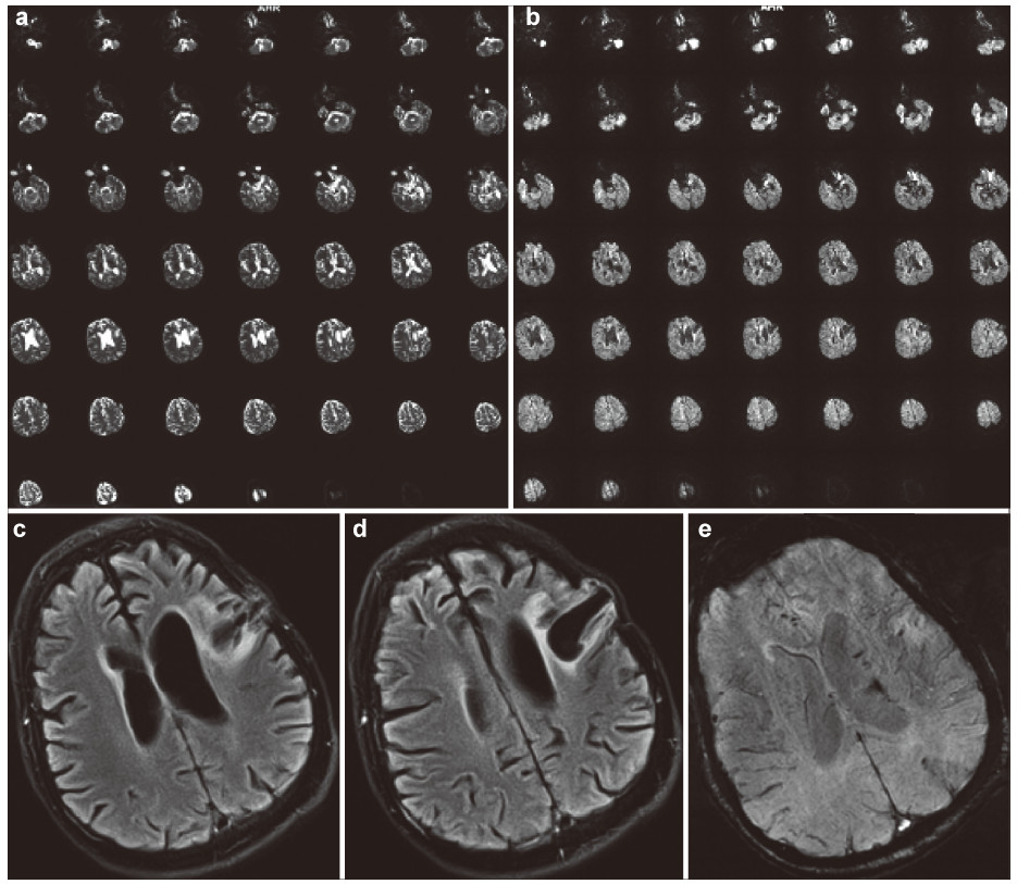 | Figure 2 a–e. 3 Tesla MRI of the brain of patient B. |