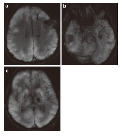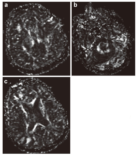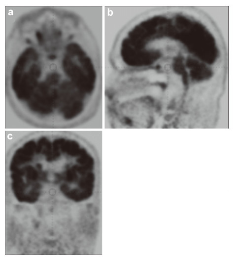 | Figure 5 a–c. PET scanning of the brain of patient B. |