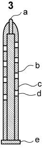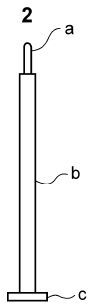 | Figure 2 Vertical view of the plunger. a. Bullet-like head of the plunger. b. Plunger body. c. Plunger rod. |