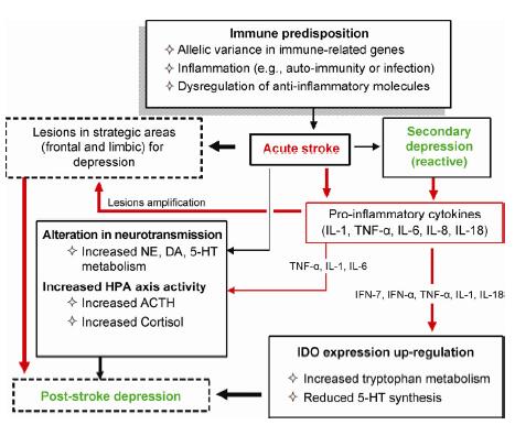| Figure 1 Molecular basis of post-stroke depression[44] |