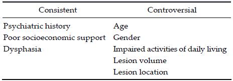 The risk factors for PSD are considered consistent and controversial.