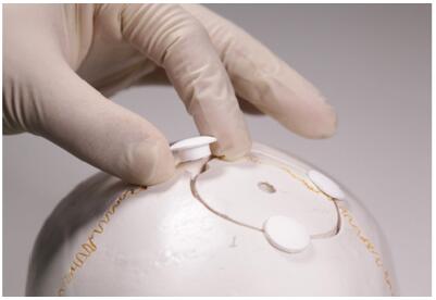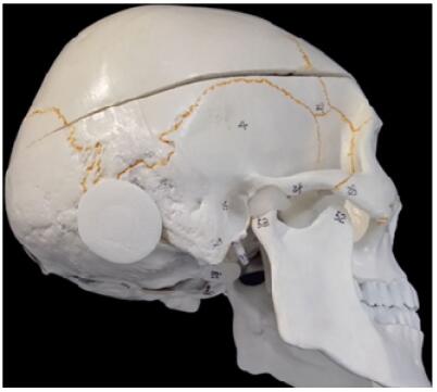 | Figure 2 Skull repair plug used to patch burr hole trepanned in trigeminal neuralgia decompression surgery. |
