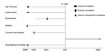 | Figure 1 Relationship among risk factors and the distribution of arterial stenosis. |