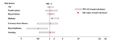| Figure 2 Multi-factor logistic regression analysis of patients with moderately severe intracranial arterial stenosis. CI: Confidence intervals; OR: Odds Ratio. |