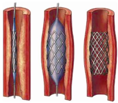 | Figure 3 Balloon dilatation stent implantation for the treatment of stenosis. |